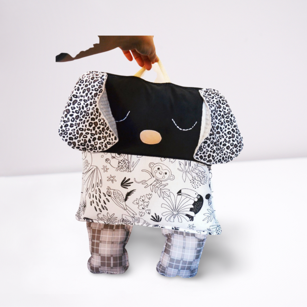 Le Coussin Joli Chien Noir et Blanc avec Anse est bien plus qu’un simple coussin de sieste : c’est l’ami stylé de toutes les aventures. Parfaitement adapté au monde des tout-petits, son design graphique en noir et blanc a été pensé pour stimuler l’éveil visuel et s’intégrer dans les décorations de chambre les plus contemporaines.